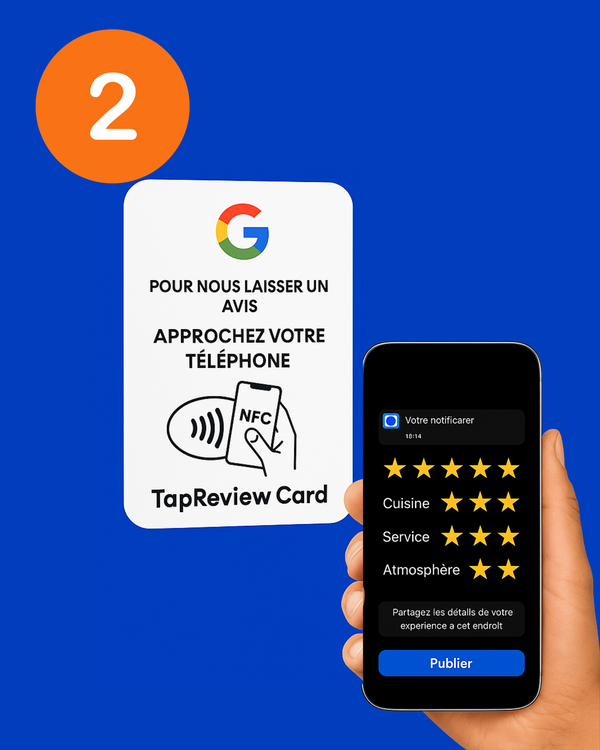 Les restaurants qui utilisent la TapReview Card™ constatent jusqu'à 5 fois plus d'avis, car pour les clients, c'est rapide, simple et sans effort.